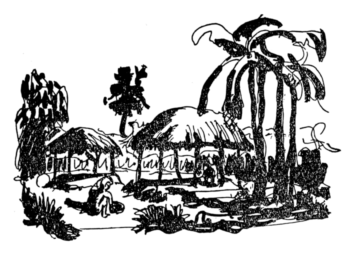 These homesteads may be close together in a village, as they are in the West, or, in the more flooded areas in the East, in straggling villages, each homestead on a little knoll, out of reach of the water. Perhaps nearby is a grove of mango trees, here and there a coconut, and little groups of palms, the juice of which is boiled and a sweet sugar made. All amongst